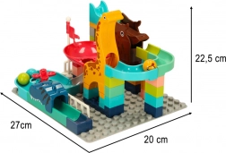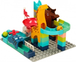 Bouw samen met kinderen een eigen knikkersbaan en kijk hoe de knikkers over hellingen, glijbanen en spiralen naar beneden suizen. De diertjes zijn niet alleen versiering – ze maken deel uit van de route, waardoor het spel nog leuker en boeiender is. De set is uitstekend voor de ontwikkeling van logisch denken en het plezier van een voltooide bouw.