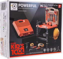 Ontdek de wereld van leuk klussen met deze kinderwerkbankset, die 90 verschillende componenten bevat en de mogelijkheid biedt om een werkbank of gereedschapskoffer te bouwen. Deze set is ideaal voor de ontwikkeling van de verbeelding en fijne motoriek van kinderen.