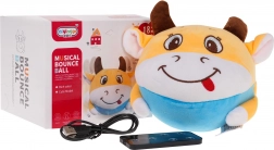 Het vrolijke springende koetje is een zachte interactieve pluchen knuffel voor de allerkleinsten. Binnenin zit een uitneembare ronde functionele module, waardoor het na het inschakelen springt, beweegt, melodieën afspeelt en tegelijk groene achtergrondverlichting geeft. De bediening wordt vereenvoudigd door de meegeleverde afstandsbediening, de voeding wordt verzorgd door een oplaadbare accu die via USB wordt opgeladen.