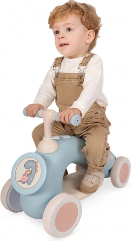 De speelse COCO 2024 loopfiets is ideaal voor de eerste ritjes van kinderen die al hun eerste stapjes beheersen. Dankzij het lage zadel en de stabiele constructie oefenen kinderen veilig op- en afstappen, afzetten en sturen, waardoor ze hun motoriek en bewegingszekerheid natuurlijk ontwikkelen. Het design met een dinosaurusjong in zachte pastelkleuren geeft de loopfiets een unieke uitstraling.