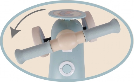 Het draaibare stuur met veiligheidssysteem voorkomt beknelde vingertjes en ongewenst doordraaien. De rubberen handvatten zijn comfortabel en antislip.