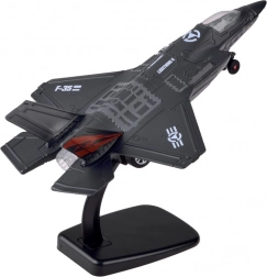 Ontdek het gedetailleerde metalen model van het militaire F-25-vliegtuig, dat duurzame afwerking combineert met aantrekkelijke functies voor kinderen vanaf 3 jaar. Na achteruit trekken rijdt het dankzij het pull-back mechanisme naar voren. Bij aandrukken op het oppervlak worden motor- en schietsounds geactiveerd en gaat de LED-verlichting in de cockpit aan, wat de realiteit van het spel vergroot.