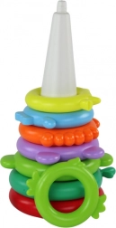 Kinderen stapelen de ringen van groot naar klein en ontwikkelen daarbij logisch denken, oog-handcoördinatie en geduld.