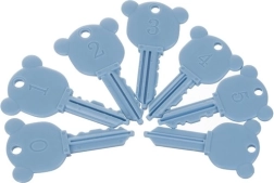 Unieke sleuteltjes in de vorm van beertjes zijn genummerd en passen telkens maar op één voertuig – stimuleert logisch denken en coördinatie.