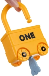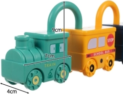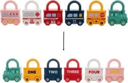 Dit slimme educatieve speelgoed combineert plezier met zinvol leren. Elk voertuig is een slot en bij elk hoort één beervormig sleuteltje met het cijfer 0–5. Zo traint het kind op een natuurlijke manier de fijne motoriek, het logisch denken en het herkennen van cijfers. Het bovenste deel van het slot kan 360° draaien; na het juiste ontgrendelen kunnen de voertuigen eenvoudig tot een lange trein worden gekoppeld.