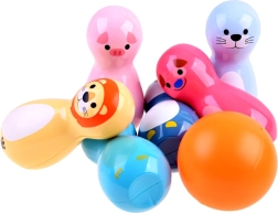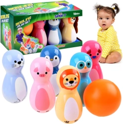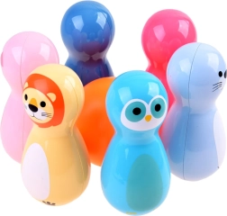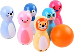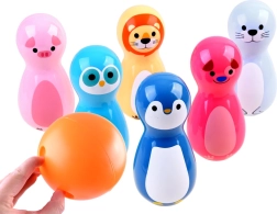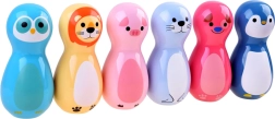 • 6 schattige kegels met dierenmotieven (varkentje, zeehond, pinguïn, leeuw, hondje, uil)