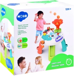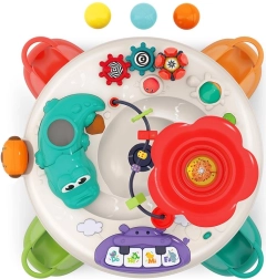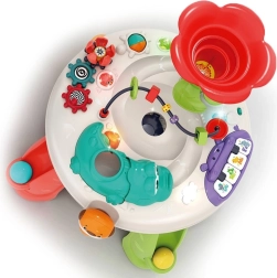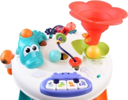 De interactieve kindertafel is uitgerust met diverse elementen die de zintuiglijke en motorische ontwikkeling ondersteunen. Met geluiden, licht en beweging trekt hij de aandacht van kinderen en houdt hij ze bezig.