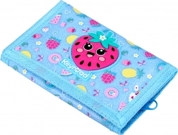 De portemonnee is verkrijgbaar in 3 verschillende uitvoeringen: blauw met aardbei, roze met donut en rood met konijntje. De compacte afmetingen zijn ideaal voor in de schooltas, rugzak of jaszak.