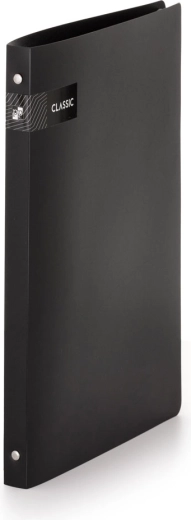 Elegante ringmap van extra sterk polypropyleen in een universele zwarte kleur biedt betrouwbare opslag van documenten in A4-formaat. Dankzij de 4-ringsmechaniek en de slanke rug van 2 cm is hij ideaal voor in de aktetas en voor overzichtelijke archivering.