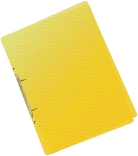 Gele ordner in A5-formaat, gemaakt van duurzaam polypropyleen, ideaal voor dagelijks werk of studie. De stevige 2-rings mechaniek zorgt voor een veilige bevestiging van documenten.