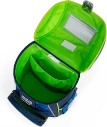 Het hoofdvak biedt ruimte voor alle schoolbenodigdheden en behoudt de vorm dankzij de interne versteviging. Het voorvak is ideaal voor een snack en kleinigheden; extra veiligheid biedt de metalen gesp met geïntegreerd reflecterend element en reflecterende details rondom. De stevige bodem beschermt de inhoud tegen omvallen en uitvallen; extra haakjes vergemakkelijken het vastzetten van de banden.