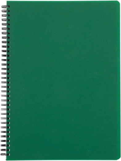 Praktisch ringblok in een elegante groene kleur in A4-formaat met 60 gelinieerde vellen, zijbinding met dubbele spiraal voor soepel omslaan en geperforeerde pagina’s voor gemakkelijk uitscheuren. Duurzame PP omslagen beschermen je aantekeningen onderweg naar school, werk en bij creatief schrijven.