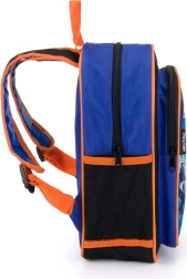 Deze vrolijke kleuterrugzak in een blauw-oranje kleurencombinatie is ontworpen om kinderen voldoende ruimte te bieden voor dagelijkse benodigdheden. Het hoofdvak biedt plaats aan favoriet speelgoed of kleding, het voorvak is ideaal voor een tussendoortje en kleine spulletjes. De zijvakken van gaas houden een drinkfles veilig op zijn plek.