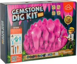 Verander de woonkamer in een kleine vindplaats en ontdek de schatten van de aarde. Deze geologische set ontwikkelt de fijne motoriek, nieuwsgierigheid en concentratie: kinderen hakken stenen uit de roze gipsen 'kristal', maken ze schoon en leren met de kaart GEM MAP de basis van de mineralogie.