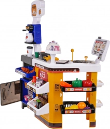 Deze doordachte kindersupermarkt verandert de kinderkamer in een echte winkel. De set bevat een kassa met kaartlezer, scanner, microfoon, weegschaal, te openen koelkast, schappen en veel realistische namaaketenswaren. Dankzij de licht- en geluidseffecten is het spel nog leuker en stimuleert het de verbeelding en sociale vaardigheden.