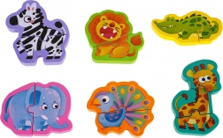 Bevat houten dierenfiguren: zebra, leeuw, olifant, pauw, giraffe en krokodil. Geweldig voor zelfstandig spelen en samen creatief bezig zijn met ouders.