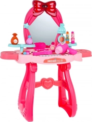 Stevige poten met hartjes, een grote spiegel en schattige details in roze tinten maken van de kaptafel een veilige en mooie speelplek.