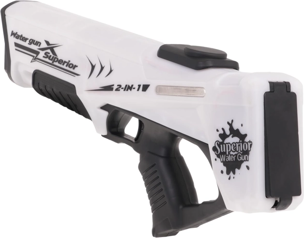 Dit elektrische waterpistool combineert eenvoudige bediening met aantrekkelijke LED-verlichting, zodat je overdag én ’s avonds van actievol plezier kunt genieten. Dankzij de 2-in-1-modus kun je schieten met een 3,7 V-accuvoeding of het pistool handmatig gebruiken zonder batterij.