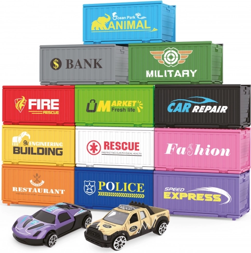 Containerspeelplaats biedt een spelervaring voor kinderen met 6 containers, waarbij elke container een auto verbergt. Deze set stimuleert creativiteit en ontwikkelt de verbeelding van kinderen.