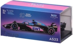 Iconische teamkleuren in blauw, roze en zwart, authentieke logo’s van sponsors BWT, ALPINE en Castrol en aerodynamische vormen – dit model biedt de realistische uitstraling van de echte Alpine A523 (seizoen 2023). Op schaal 1:43 komt het prachtig tot zijn recht in elke vitrine.