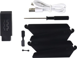 Inclusief USB-oplaadkabel, reserve rotors, schroevendraaier en handleiding – alles wat je nodig hebt om snel te starten.