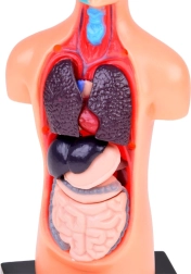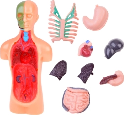 Hart, longen, lever, maag, alvleesklier en darmen kunnen worden uitgenomen en weer teruggeplaatst, waardoor leren aanschouwelijk en leuk wordt.