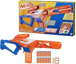 Til je gevechten naar een hoger niveau met de Nerf N Series Pinpoint blaster. Dankzij de robuuste constructie, ergonomische greep en het ingebouwde vizier vind je je doel snel en met zekerheid. Het grendelmechanisme zorgt voor soepel en precies laden, zodat jij je op het spel kunt concentreren.