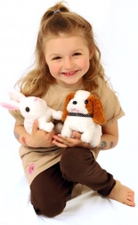 Zijn compacte formaat van ca. 15 × 12 cm ligt perfect in kleine handjes, het zachte materiaal voelt prettig aan en de doos die als hondenhok dient maakt het een geweldig cadeau. Plaats gewoon 2× AA-batterijen (niet inbegrepen) en het plezier kan beginnen.