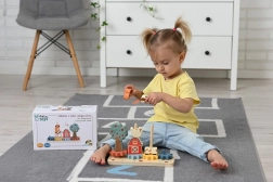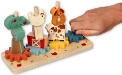De puzzel 'Gekke boerderij' is ontworpen om de speelse verbeelding van kinderen te verrijken met houten elementen in levendige kleuren. Dankzij de onderdelen in de vorm van een boerderij, bomen en dieren leren kinderen stukken strategisch te plaatsen en uitdagingen in spel om te zetten. Het speelgoed is uitgerust met tandwielen, waardoor kinderen de principes van mechanica kunnen ontdekken.
