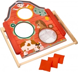 Geniet van uren speelplezier met dit prachtig afgewerkte houten spel met boerderijthema. Geschikt voor zowel binnen als buiten, het spel traint de oog-handcoördinatie en leert kinderen tellen en punten verzamelen. Eenvoudig op te zetten dankzij de constructie met een steun die stabiliteit tijdens het spelen biedt.