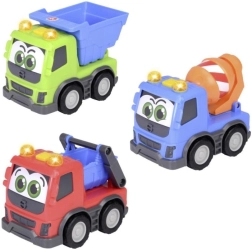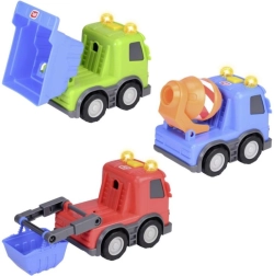 Ontdek het vrolijke werkautootje voor de allerkleinsten, ideaal voor leuk en fantasierijk spel. Kies uit drie varianten: kipper, betonmixer of vrachtwagen.