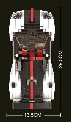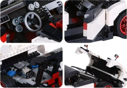 Deze verfijnde bouwset zal alle autoliefhebbers en techniekliefhebbers aanspreken. Realistische proporties op schaal 1:16, contrasterend zwart‑wit met rode accenten en functionele onderdelen maken er een geweldig model van om mee te spelen en te presenteren. Dankzij de duidelijke, geïllustreerde handleiding is de bouw leuk en stimuleert het de fijne motoriek, het ruimtelijk inzicht en het geduld.