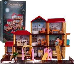 Ontdek een wereld vol fantasie met het grote poppenhuis met 251 onderdelen – inclusief huis met tuintje, meubels, auto, 2 poppen, hondjes en tal van accessoires. Inclusief lichtgevende lampjes op batterijen, schommel en glijbaan, en volledig ingerichte ruimtes zoals keuken, badkamer, woonkamer, slaapkamer en kleedkamer. Ideaal voor kinderen vanaf 3 jaar.