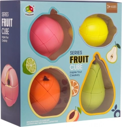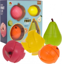 Deze kleurrijke set bevat vier 3D-puzzels in de vorm van populaire fruitsoorten: appel, citroen, sinaasappel en peer. Elk model bestaat uit onderling verbonden delen die je kunt draaien en herpositioneren. Het doel is om na het mixen de stukjes terug te brengen naar de oorspronkelijke vorm van de vrucht – een leuke uitdaging voor kinderen en volwassenen.