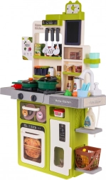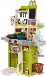 | . . | Rijk uitgerust, grote multifunctionele speelkeuken voor kinderen vanaf 3 jaar. De keuken heeft een gootsteen met kraan waar echt water uit komt, verlichte kookpitten met bak- en kookgeluiden, één van de pitten heeft een stoomfunctie, draaibare knoppen, een oven met te openen deur, een koelkast met te openen deur, een klok met beweegbare wijzers, planken en talrijke keukentoebehoren (63 stuks). Werkt op 3 AA 1,5 V batterijen (niet inbegrepen). .. Functies van de keuken: . - geschikt voor kinderen vanaf 3 jaar, .- gemaakt van kunststof van de hoogste kwaliteit, .- maakt bak- en kookgeluiden, .- verlichte kookpitten, .- draaibare knoppen, .- stoom uit de kookpit, .- water uit de kraan, .- koelkast met te openen deur, .- oven met te openen deur, .- 2 x te openen kast, .- klok met beweegbare wijzers, .- afneembaar krijtbord om op te tekenen. |