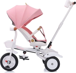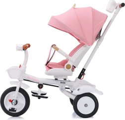 De driewieler met kap 2-in-1 Futuro Princess Chipolino combineert comfort, veiligheid en plezier. Dankzij de draaibare zitting (met en tegen de rijrichting), in hoogte verstelbare duwstang voor ouders en opvouwbare elementen past hij zich gemakkelijk aan de actuele behoeften van kind en ouder aan. Het stuur met muziek en licht maakt elke rit een vrolijke ervaring.