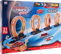 Racebaan voor kleine coureurs, ideaal voor kinderen vanaf 3 jaar. Bevat 31 onderdelen die eenvoudig te monteren zijn en vier fascinerende lussen vormen voor spannende races.