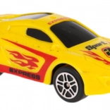 Inclusief gele auto met vlammenmotief en pull-back aandrijving.