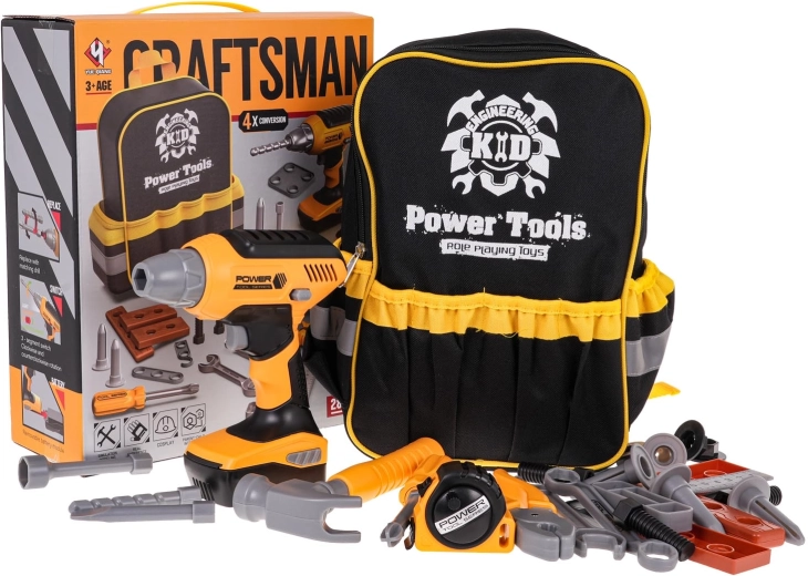 Kindergereedschapsset met rugzak en accessoires is een rijk uitgeruste gereedschapsset, ideaal voor kinderen vanaf 3 jaar. Gemaakt van hoogwaardige kunststof en inclusief een interactieve boormachine die elk kind zal vermaken.