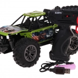 In de verpakking vind je alles voor direct rijplezier: Crawler DINO, afstandsbediening, oplaadbare 3,7 V-accu en USB-oplaadkabel. Voor de controller voeg je 2× AA toe (niet inbegrepen).