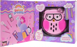 Het make-uppalet in de vorm van een roze uil opent in overzichtelijke lagen met oogschaduwen en balsems in zachte en opvallende kleuren. Dankzij de compacte afmetingen en het uitklapbare ontwerp is het ideaal voor thuis en onderweg. Alle producten zijn gemakkelijk met water afwasbaar en zacht voor de kinderhuid.