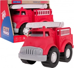 Kinder-brandweerauto van veilig bioplastic voor kinderen vanaf 3 jaar, met een duurzame constructie, bewegende wielen en een draaibare, hefbare ladder voor uren creatief spel. Het milieuvriendelijke ontwerp is natuurvriendelijk, kleurrijk en nodigt uit om brandweermissies thuis en buiten te ontdekken.