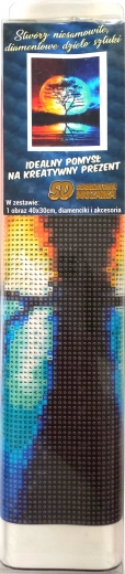 Creatieve set voor diamantschilderen met het motief „Nachtelijke Verbinding” in het formaat 30 × 40 cm biedt urenlang ontspanning en plezier voor zowel kinderen als volwassenen. In de verpakking vind je alles wat je nodig hebt – canvas met voorbedrukte afbeelding, applicatiepen, schaaltje, was en gekleurde steentjes. De voltooide afbeelding kun je gemakkelijk inlijsten (lijst niet inbegrepen).