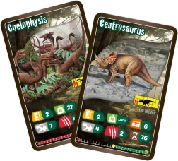 Elke kaart biedt een gedetailleerde illustratie en overzichtelijke statistieken (bijv. lengte, gewicht, snelheid), waardoor het spel zowel leuk vergelijken als een leerzame ervaring is.