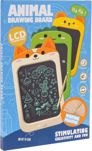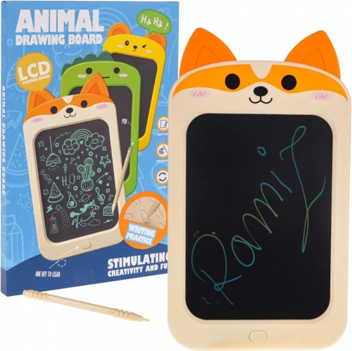 . | Kleurentablet met vosje voor kinderen vanaf 3 jaar. Ideaal als notitieblok of tekenbord. Hij is licht, praktisch en heeft een schermdiagonaal van 8,5 inch. Op het scherm van de tablet ontstaan kleurrijke tekeningen. Onderaan de tablet zit een knop waarmee de getekende afbeelding direct kan worden gewist. Deze knop werkt niet wanneer de vergrendeling aan de achterkant is geactiveerd. Die beschermt de tablet tegen onbedoeld wissen van notities, bijvoorbeeld wanneer de tablet in een rugzak zit. Aan de achterkant van de tablet is ruimte voor de stylus, die bij de set is inbegrepen, en er zijn ook inkepingen met vormen van letters van het alfabet. Het speelgoed wordt gevoed door CR2025-batterijen, die in de set zijn inbegrepen. .. Functies van de tablet: . - voor kinderen vanaf 3 jaar, .- licht en praktisch, .- gemaakt van de beste materialen, .- je kunt kleurrijke tekeningen maken dankzij verschillende kleurzones op het scherm, .- schermdiagonaal 8'5", .- geeft geen licht af, heeft geen nadelige invloed op kinderogen, .- vervangt blocnotes en schriften en is daardoor milieuvriendelijk, .- tekenen maakt geen rommel in tegenstelling tot pennen en krijt, .- heeft een knop voor het direct wissen van notities, .- heeft een vergrendeling tegen onbedoeld wissen van tekeningen, .- ziet er geweldig uit, - stylus is inbegrepen. . |
