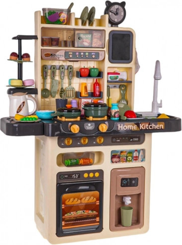 De ingebouwde gootsteen met werkende kraan maakt het mogelijk water te tappen en leert kinderen spelenderwijs basisgewoonten in de keuken.
