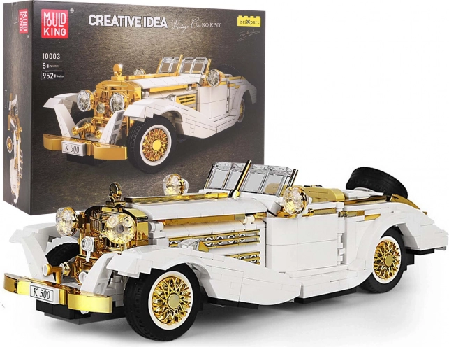 Technische bouwset retroauto met 952 onderdelen op schaal 1:16. Openende delen, functionele besturing en goud verchroomde details. Geschikt vanaf 8 jaar.