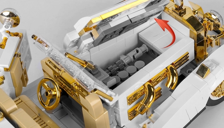 Het model is tot in detail doordacht: openende deuren, motorkap en kofferbak worden aangevuld met goud verchroomde accenten voor een luxe uitstraling. De set is geschikt vanaf 8 jaar en bevordert geduld, handvaardigheid en creativiteit. In de doos vind je een duidelijke geïllustreerde handleiding, waardoor ook beginners het model kunnen bouwen.