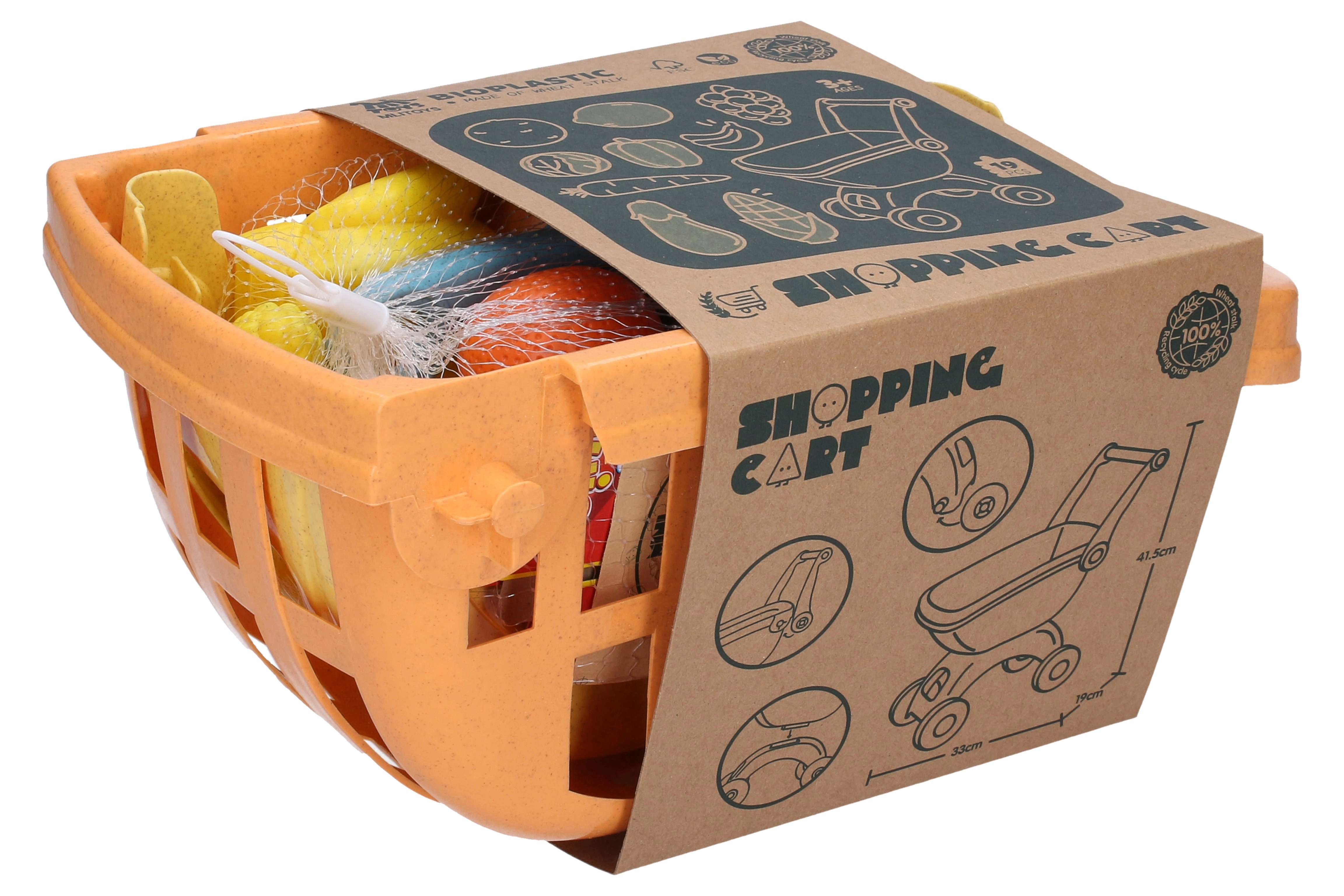 Kinderboodschappenwagentje met etenswaren Bioplastic 41,5 cm