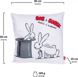 Het kinderkussen BOB A BOBEK 30 × 30 cm maakt alle liefhebbers van de legendarische konijntjes uit de hoed blij. Zacht microvelours is mild voor de kinderhuid, de hoogwaardige print met het motief “oefent” behoudt lang zijn kleuren en de vulling van holle vezel is licht en blijft goed in vorm.